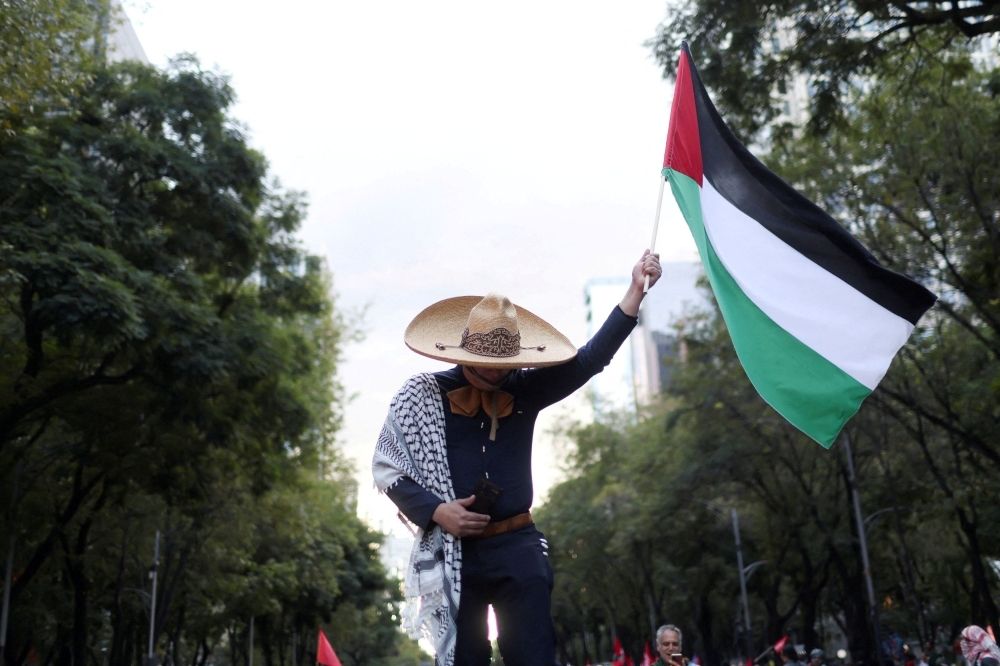 Nevin Al Sukari - Sana'a - A demonstrator dressed as a mariachi waves a Palestinian flag during a pro-Palestinian protest after Israeli forces intercepted the vessels of the Global Sumud Flotilla aiming to reach Gaza and break Israel's naval blockade, on the day of the two-year anniversary of the deadly October 7, 2023 attack on Israel by Hamas from Gaza, in Mexico City, Mexico October 7, 2025. — Reuters pic