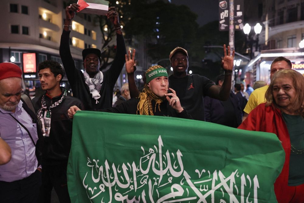 eople attend a protest in support of Hamas and calling for an end to the Israeli occupation of Palestinian territories during the second anniversary of the October 7, 2023, attack on Israel by Hamas from Gaza, in Sao Paulo, Brazil, October 7, 2025. — Reuters pic