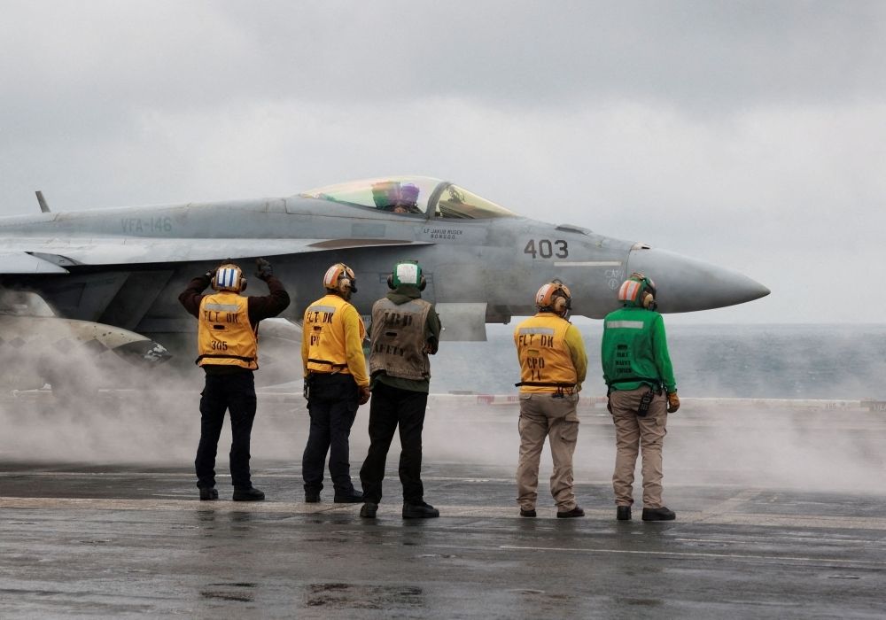 Nevin Al Sukari - Sana'a - This file picture shows crew members signal to a F/A-18E Super Hornet fighter jet preparing to take off for a routine flight on board the US USS Nimitz aircraft carrier during a routine deployment to the South China Sea on January 27, 2023. — AFP