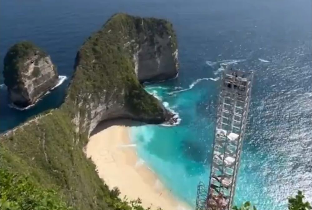 The lift was designed to shuttle tourists down to the “T-Rex cliff” viewpoint at Kelingking Beach, where the cliffs resemble a dinosaur’s head. It aimed to offer a safer alternative to the steep path, where visitors have frequently been injured. But the white steel frame drew fierce criticism, with many arguing it spoiled the iconic landscape.
