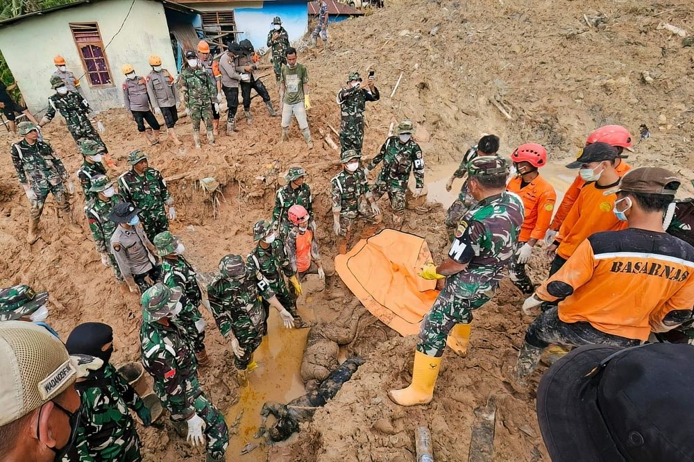 Nevin Al Sukari - Sana'a - This handout picture, taken on December 2 by Indonesia's National Disaster Agency (BASARNAS), shows military, police, and rescue personnel retrieving two bodies after digging through mud at Sibalanga village in North Tapanuli, North Sumatra. — AFP pic