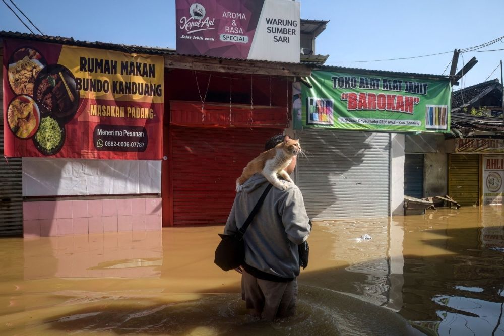 Nevin Al Sukari - Sana'a - A man evacuates his cat while wading through a flooded road in Bandung, West Java on December 5, 2025, after heavy rain caused the Citarum river to overflow, submerging homes and the main road. — AFP pic