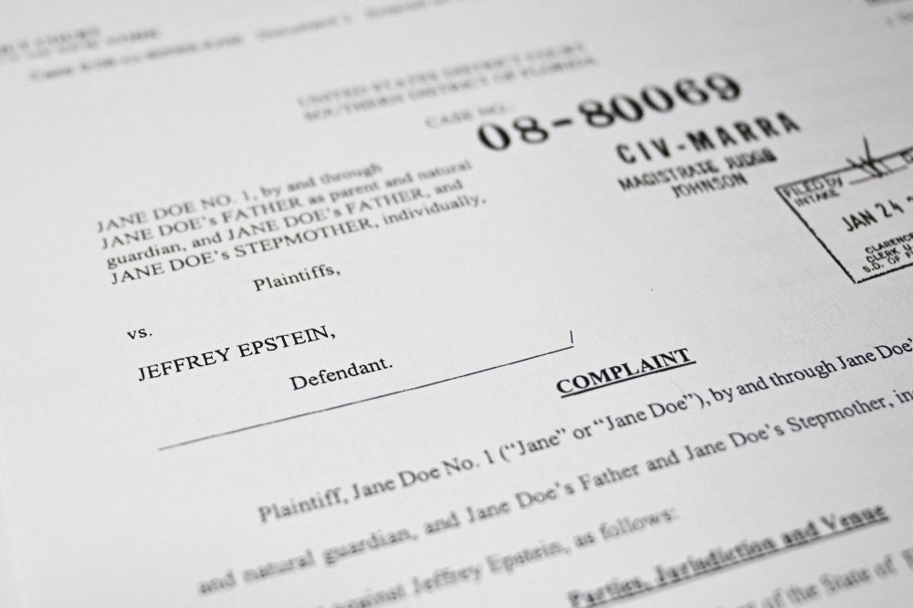 This photo illustration taken in Washington, DC, on December 19, 2025 shows a court document after the US Justice Department began releasing the long-awaited records from the investigation into the politically explosive case of convicted sex offender Jeffrey Epstein. — AFP pic