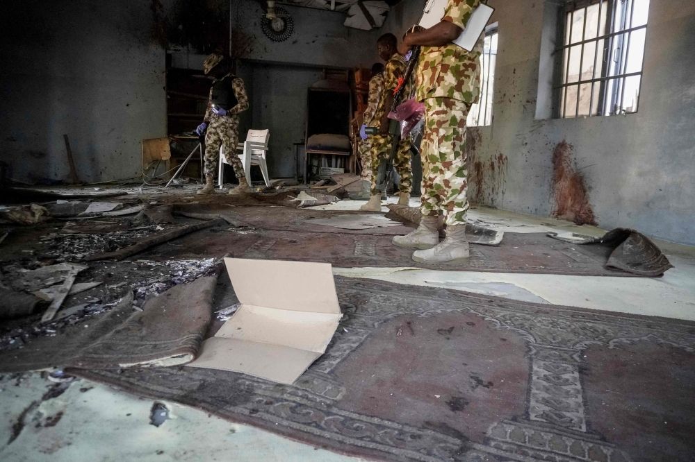 Military officers inspect a mosque in Maiduguri, capital of Borno state in northeastern Nigeria, and base of Boko Haram, an Islamic State West Africa offshoot, after a blast on December 24, 2025, killed at least seven worshippers. — AFP pic