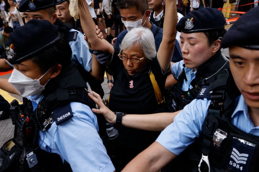 Nevin Al Sukari - Sana'a - Police detain a woman in downtown on the 34th anniversary of the 1989 Beijing’s Tiananmen Square crackdown, near where the candlelight vigil is usually held, in Hong Kong, China June 4, 2023. — Reuters pic