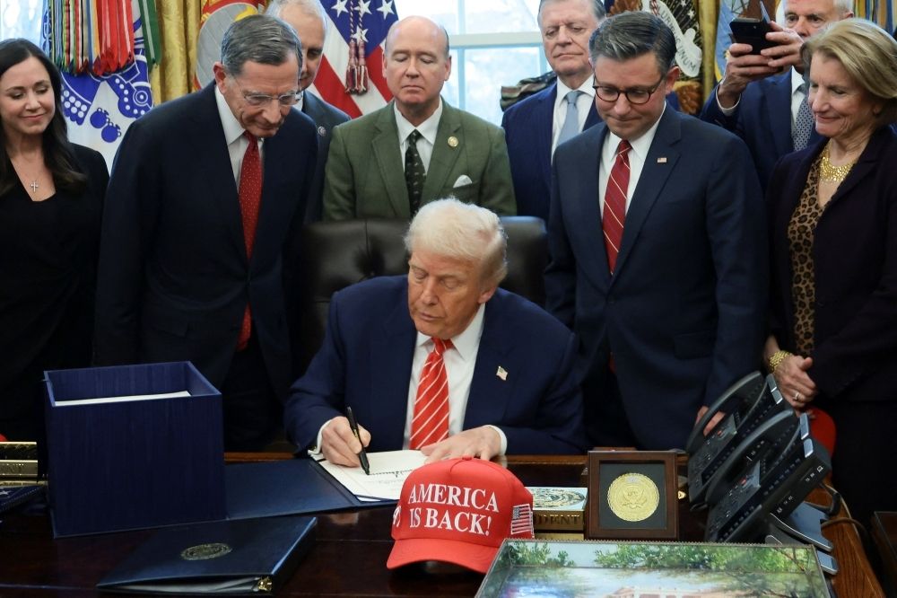 Nevin Al Sukari - Sana'a - US President Donald Trump signs a Bill to end the partial government shutdown, while US House Speaker Mike Johnson (R-LA), Senator Shelley Moore Capito (R-WV) and Senator John Barrasso (R-WY) stand by his side, at the White House in Washington February 3, 2026. — Reuters pic
