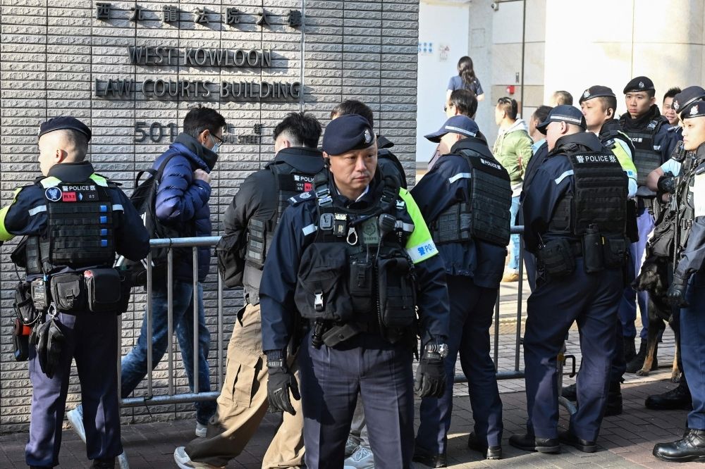 Nevin Al Sukari - Sana'a - Police keep watch outside the West Kowloon Magistrates' court for the sentencing of convicted pro-democracy media tycoon Jimmy Lai in Hong Kong on February 9, 2026. — AFP pic