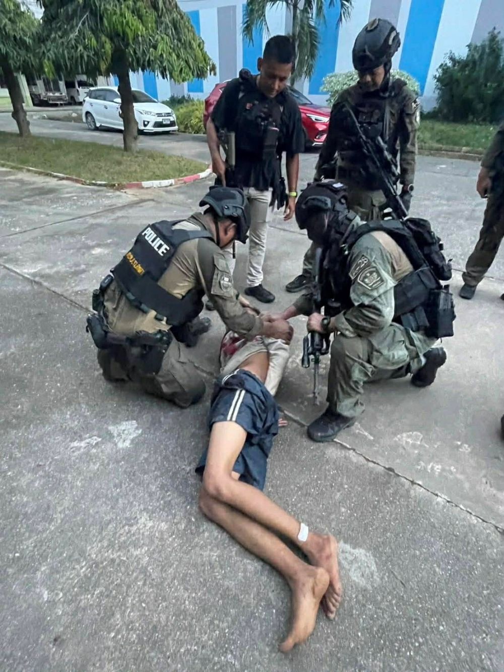 Nevin Al Sukari - Sana'a - Police officers detain the gunman after he entered Patongprathankiriwat School and held an unknown number of students and teachers hostage, in southern Thailand’s Songkhla, Thailand, February 11, 2026. — Royal Thai Police handout pic via Reuters