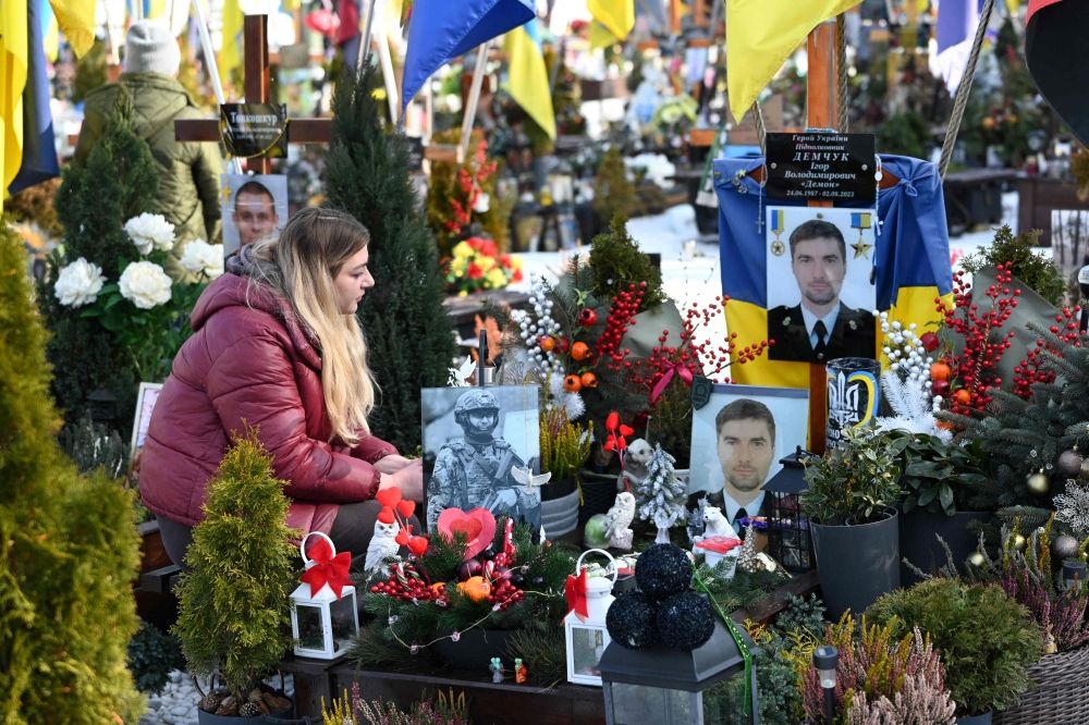 Nevin Al Sukari - Sana'a - Widow visits soldier’s grave on Valentine’s Day at Lychakiv Military Cemetery in Lviv, amid the ongoing Russian invasion of Ukraine. — AFP pic