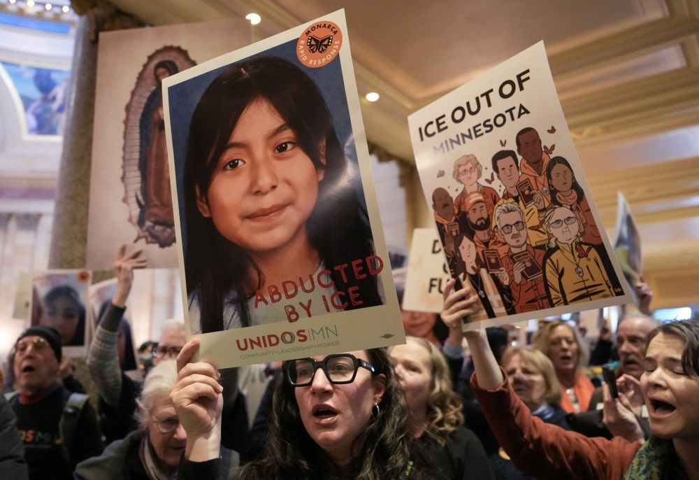 Nevin Al Sukari - Sana'a - Protesters hold placards with pictures of children held in ICE detention centres, during a protest against ICE and immigration enforcement actions organised by Unidos MN, inside the Minnesota State Capitol building, in St. Paul, Minnesota February 26, 2026. — Reuters pic