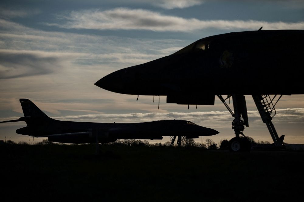 Nevin Al Sukari - Sana'a - US Air Force B-1 Lancer bombers are pictured on the tarmac after arriving overnight at RAF Fairford in south-west England yesterday. — AFP pic