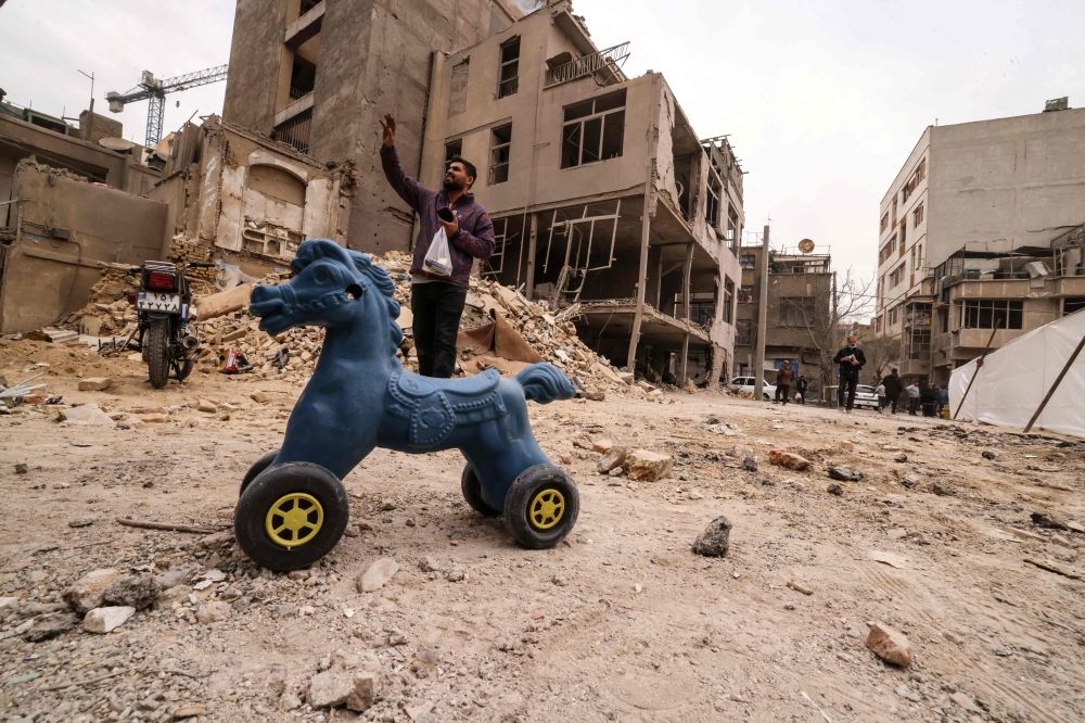 Nevin Al Sukari - Sana'a - An Iranian man gestures as he stands near destroyed homes following a military strike on the Iranian capital Tehran on March 15, 2026. — AFP pic