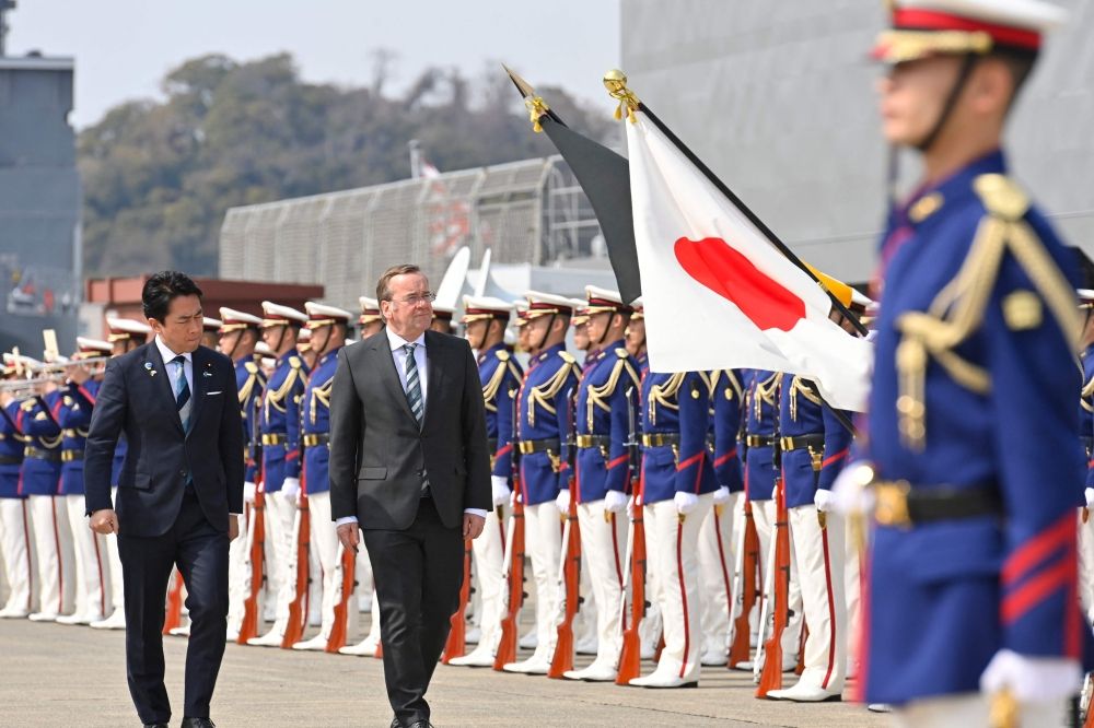 Nevin Al Sukari - Sana'a - German Defence Minister Boris Pistorius and Japan’s Defence Minister Shinjiro Koizumi inspect the honour guard during a welcome ceremony at the Japan Maritime Self-Defence Force (JMSDF)’s naval base in Yokosuka, south of Tokyo on March 22, 2026. — AFP pic