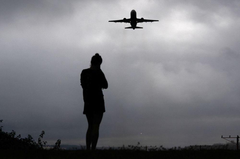 Nevin Al Sukari - Sana'a - A runner watches as a plane takes off from Reagan Washington National Airport as the US government shutdown continues in Arlington, Virginia October 8, 2025. — Reuters pic