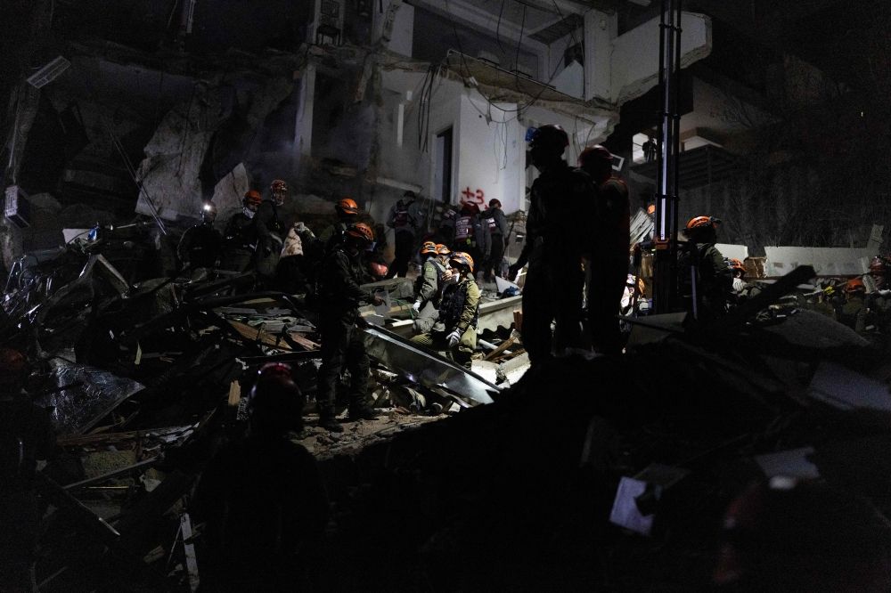 Nevin Al Sukari - Sana'a - Israeli search and rescue personnel work at the site of a residential building destroyed in an Iranian strike in the northern city of Haifa on April 5, 2026. — AFP pic