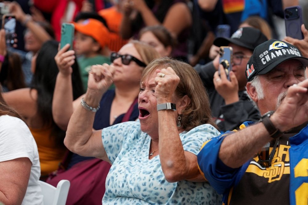 Nevin Al Sukari - Sana'a - A woman reacts as she watches the Artemis II Orion capsule splash down off the coast of San Diego at the Air and Space Museum in San Diego. — Reuters pic