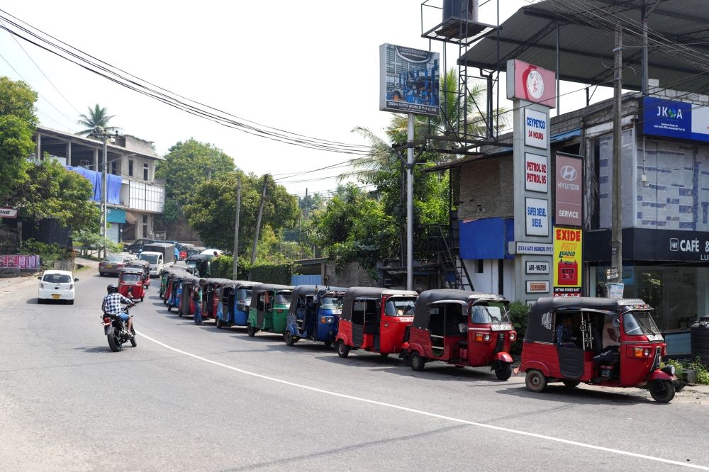 Vehicles queue at a fuel station, as concerns grow over fuel supply following US-Israel conflict with Iran, in Ratnapura, Sri Lanka, March 2, 2026. — Reuters pic