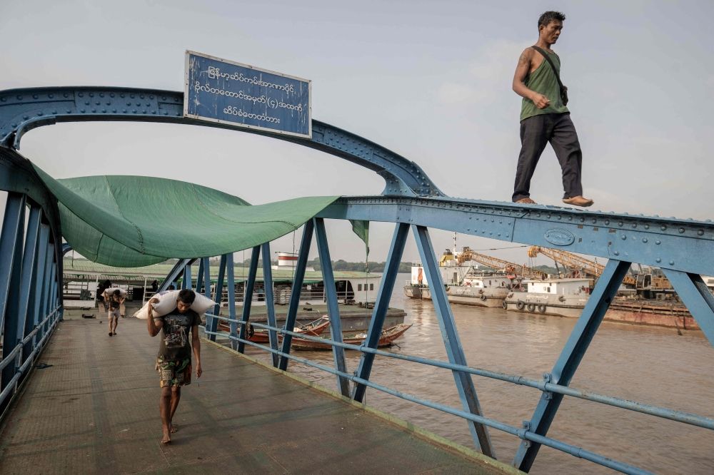 Nevin Al Sukari - Sana'a - Labourers unload sacks of rice from a ship along a jetty in Yangon on April 23, 2026. — AFP pic