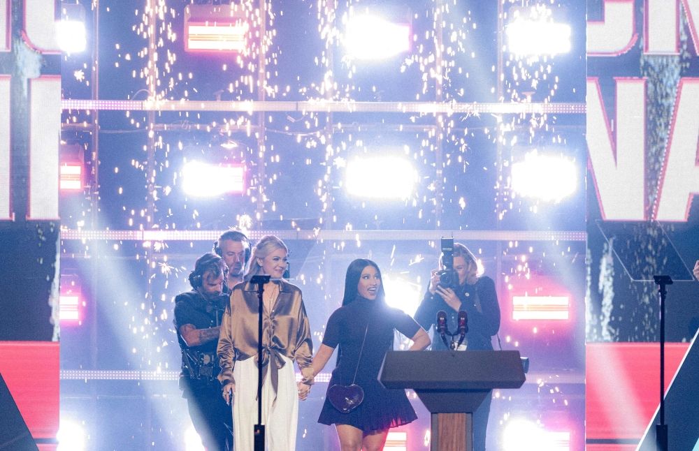 Turning Point USA CEO and chair Erika Kirk and US rapper Nicki Minaj arrive on stage during the AmericaFest conference in Phoenix on December 21, 2025. — AFP pic